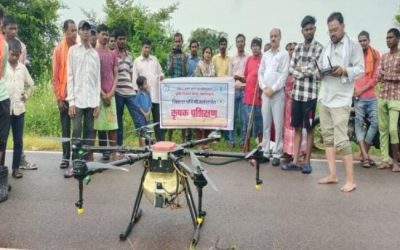 धान की फसल में ड्रोन तकनीक का सफल प्रदर्शन