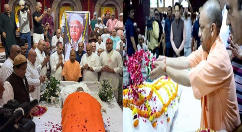 मुख्यमंत्री योगी आदित्यनाथ गुरुवार को लखनऊ स्थित शिव शांति आश्रम पहुंचे और आश्रम के पीठाधीश्वर संत शिरोमणि साईं चांडूराम जी के अंतिम दर्शन कर उन्हें श्रद्धांजलि अर्पित की। उन्होंने संत शिरोमणि के पार्थिव शरीर पर पुष्पांजलि अर्पित की और उपस्थित शोकाकुल श्रद्धालुओं के प्रति अपनी गहरी संवेदनाएं व्यक्त कीं। मुख्यमंत्री योगी ने इस अवसर पर संत शिरोमणि साईं चांडूराम जी के पार्थिव शरीर पर केसरिया अंग वस्त्र ओढ़ाया और उनकी प्रतिमा पर पुष्पांजलि अर्पित कर नमन किया। गौरतलब है कि संत शिरोमणि साईं चांडूराम जी बुधवार को ब्रह्मलीन हो गए थे।