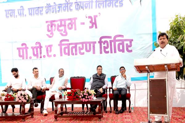 भोपाल : ऊर्जा मंत्री प्रद्युम्न सिंह तोमर एवं नवीन व नवकरणीय ऊर्जा मंत्री राकेश शुक्ला ने आज एमपी पॉवर मैनेजमेंट कंपनी के भोपाल स्थित क्षेत्रीय कार्यालय में प्रधानमंत्री किसान ऊर्जा एवं उत्थान महाअभियान (पीएम-कुसुम) योजना के घटक ‘ए’ के अंतर्गत योजना के द्वितीय चरण में 500 मेगावाट क्षमता हेतु निष्पादित पॉवर परचेस एग्रीमेंट (पीपीए) को हितग्राहियों में वितरित करने का कार्यक्रम प्रारंभ किया।