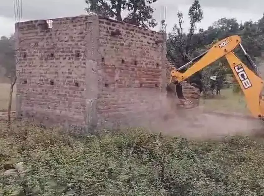 मनेन्द्रगढ़: जिले के जनकपुर स्थित वन परिक्षेत्र कुंवारपुर में वन विभाग की एक कार्रवाई ने राजनीतिक हलचल मचा दी है। बैगा जनजाति के एक परिवार का प्रधानमंत्री आवास योजना के तहत बना घर अचानक तोड़ दिया गया।