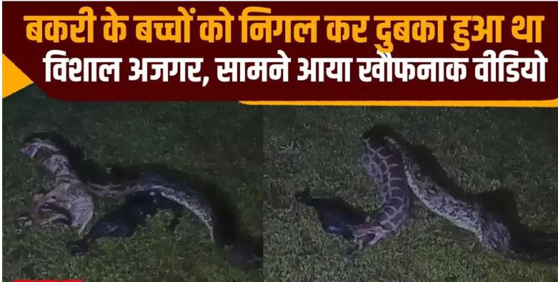 बकरी के बच्चों को निगल लिया अजगर