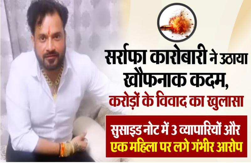गाजियाबाद। देश की राजधानी दिल्ली से सटे उत्तर प्रदेश के जिला गाजियाबाद में, राजनगर एक्सटेंशन इलाके में एक ज्वैलर ने कार में बैठकर खुद को गोली मार ली। ज्वैलर का शोरूम दिल्ली में है। मौत से पहले उसने एक सुसाइड नोट भी लिखा है, जिसमें ज्वैलर ने एक महिला समेत चार कारोबारियों पर अपना एक करोड़ रुपया का सोना ठगने का आरोप लगाया है। पुलिस ने शव पोस्टमार्टम को भेज मामले की तहकीकात शुरू कर दी है। जानकारी के मुताबिक, जितेंद्र कुमार उर्फ जीतू दिल्ली में जेएसके नाम से ज्वैलरी शोरूम चलाते थे। जितेंद्र यहां राजनगर एक्सटेंशन की ऑफिसर्स सिटी II में परिवार के साथ रहते थे। बुधवार दोपहर वह शोरूम से जल्दी घर लौट आए और कुछ देर बाद घर के बाहर खड़ी अपनी गाड़ी में जाकर बैठ गए। इसके बाद दीपक ने खुद के सीने में गोली मार ली। गोली की आवाज सुनते ही आस-पास के लोग और परिजन कार की तरफ दौड़े।