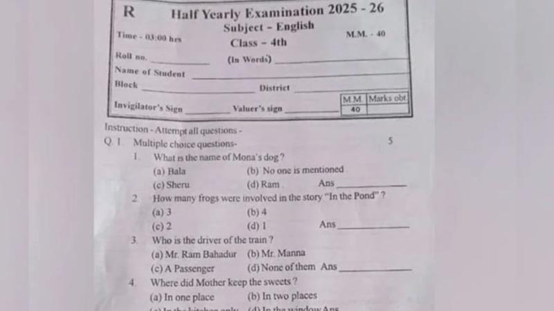 दरअसल महासमुंद के शासकीय विद्यालयों मे अर्ध वार्षिक परीक्षा संचालित हो रही है. 7 जनवरी को चौथी क्लास का अंग्रेजी का प्रश्नपत्र था. जिसमें पहला प्रश्न था कि what is the name of Mona,s dog? जवाब के चार विकल्प में a-Bala , b-No one is mentioned, c-Sheru, d-Ram लिखा था. जिसे लेकर हिन्दू संगठन आक्रोशित हो गये. इसके बाद बवाल मच गया.