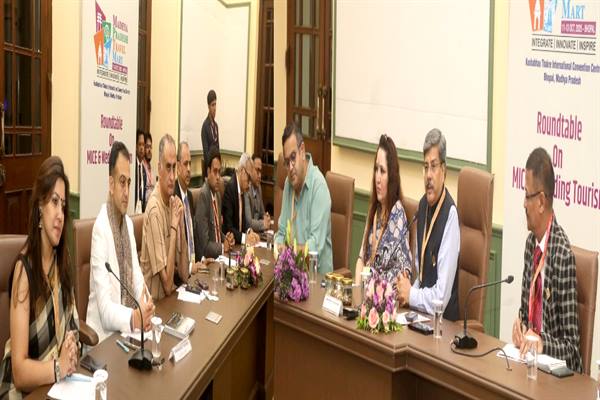 भोपाल : मध्यप्रदेश पर्यटन बोर्ड द्वारा एफआईसीसीआई वेडिंग टूरिज्म कमेटी के सहयोग से कुशाभाऊ ठाकरे अंतर्राष्ट्रीय कन्वेंशन सेंटर, भोपाल में “एम.आई.सी.ई. एवं वेडिंग टूरिज्म” विषय पर राउंडटेबल चर्चा हुई। कार्यक्रम का संचालन एफआईसीसीआई वेडिंग टूरिज्म कमेटी के चेयरमैन चेतन वोहरा ने किया।