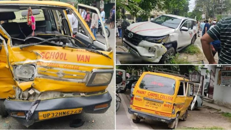 दरअसल यह पूरा मामला महानगर थानाक्षेत्र से जुड़ा है। सुबह के समय जब बच्चे स्कूली वैन से स्कूल जा रहे थे, तभी रास्ते में फॉर्च्यूनर कार और स्कूली वैन की भिड़ंत हो गई है। यह भिड़ंत आमने-सामने हुई है। इसमें ना केवल स्कूली बच्चों को चोटें आई है, बल्कि स्कूली वैन भी बुरी तरह से पिचक गई है। हादसे में घायल बच्चों को नजदीकी अस्पताल ले जाया गया है, जहां शुरुआती इलाज किया गया है। बताया जा रहा है कि किसी भी बच्चे को गंभीर चोट नहीं आई है। हर किसी के हल्की-फुल्की हो चोट आई है। फिलहाल सभी को वापस घर भेज दिया गया है। उधर स्कूली वैन और फॉर्च्यूनर कार को भी नुकसान पहुंचा है। महानगर एसएचओ ने बताया कि हादसे के बाद फॉर्च्यूनर कार सवार को पकड़ लिया गया है। उससे पूछताछ की जा रही है। 2-4 बच्चों को खरोंच वगैरह आ गई थी तो उन्हें डॉक्टर को दिखा दिया गया है। दोनों गाड़ियां आमने-सामने आ गई थी। यह सभी बच्चे माउंट कार्मेल कॉलेज के थे। फिलहाल इस मामले की जांच की जा रही है। स्कूली वैन का अगला हिस्सा बुरी तरह से पिचक गया है। आगे का शीशा भी टूट गया है। जबकि नई फॉर्च्यूनर गाड़ी में भी आगे और पीछे साइड में नुकसान हुआ है।