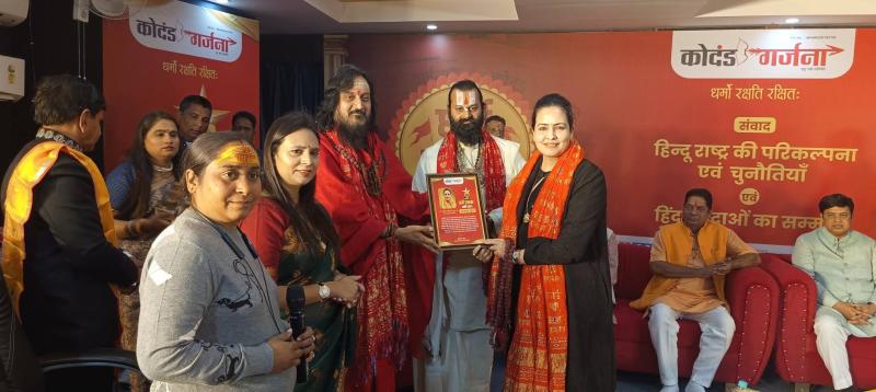 ज्योतिषाचार्य पं. अरविंद तिवारी ने कहा कि भारत का पुनरजागरण हो चुका है। 2029 में संविधान में बड़ा बदलाव होगा, उसके बाद एकरूपता आयेगी। वर्ष 2050 के बाद भारत विश्व गुरु बनेगा। अभिभाषक डॉ. पंकज वाधवानी ने कहा कि सनातन धर्म सह अस्तितव् और स्वबंधुत्व की बात करता है। जैन, यहूदी और सिख धर्म से भी कई गुणा पुराना है हिंदू धर्म। यदि भारत को हिंदू राष्ट बनाना है तो हमें संविधान को बदलना होगा। पूर्व विधायक जीतू जिराती ने कहा कि वर्ष 2014 के बाद भारत में अभुतपूर्व बदलाव आया है। साधु -संतो का मान – सम्मान बढ़ा।धार्मिक स्थलों पर भक्तो की संख्या कई गुणा बढ़ गई है। अखिल भारतीय बलाई समाज के राष्ट्रीय अध्यक्ष मनोज परमार ने कहा कि गिरी, कंदराओ और जंगलो में रहने वाला आदिवासी समाज हमारे बंधु है उन्हे साथ रखना जरूरी है, अन्यथा उनका धर्मांतरण हो जायेगा। इसको रोकना जरूरी है। ज्योतिषाचार्य पं. अजय व्यास ने कहा कि भारत को वर्षो बाद नरेंद्र मोदी के रूप में एक योग्य लीडर मिला है, जो अपने कार्यो से पूरी दुनिया में भारत की धर्म ध्वजा को लहरा रहा है। अगले चुनाव में भी मोदी के प्रधान मंत्री बनने के पूरे आसार है। सनातन धर्म पर हर भारतीय को गर्व करना चाहिए। अभिभाषक दुर्गेश तिवारी ने कहा कि भारत घोषित रूप से हिंदू राष्ट है। कुछ राजनीतिक दलों में इच्छा शक्ति नहीं होने की वजह से भारत हिंदू राष्ट् नहीं बन रहा है। कार्यक्रम का संचालन आलोक बाजपेयी, ऋतु साहू एवं डॉ. प्रदीप राव ने किया। कार्यक्रम का शुभारंभ अतिथियों ने दीप प्रजवलित कर किया। इसके पूर्व बच्चों ने हनुमान चालीसा की संगीतमय प्रस्तुति दी। कार्यक्रम में विनीत शर्मा बिजनेस हेड ओमेक्स ग्रुप, डॉ. आयुषी देशमुख अध्यक्ष सूर्योदय आश्रम, डॉ. अलका झा चित्रकार मधुबनी, दर्शन देवड़ा सामाजिक कार्यकर्ता, रितेश माहेश्वरी सामाजिक कार्यकर्ता, सोनू गहलोत सामाजिक कार्यकर्ता का सम्मान किया गया। धर्म संसद में राजेश दिसावल, हर्षवर्धन सिंह, प्रवीण जोशी, रवि यादव, अंबर नायक, नवीन यादव, कृष्णकांत रोकड़े सहित संत – महंत, विद्वतजन, धर्मानुरागी आदि बड़ी संख्या में उपस्थित थे। सभी अतिथियों का स्वागत कोदंड गर्जना की संपादक और सयोजक शीतल रॉय ने किया। इस मौके पर अतिथियों ने कोदंड गर्जना की पांचवीं वर्षगांठ में प्रकाशित विशेषांक का विमोचन करते हुए कहा कि आज ऐसे ही पत्र की जरूरत है, जो समाज में समरसता लाये।