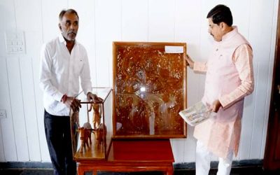 मुख्यमंत्री डॉ. यादव से काष्ठ मूर्ति कलाकार विश्वकर्मा ने की सौजन्य भेंट